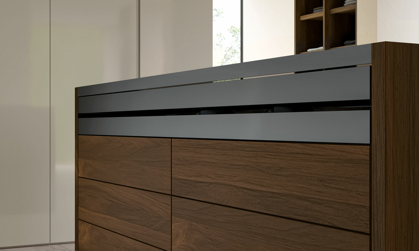 Отделка Tundra Walnut Top с коричневой рамой и дымчатым стеклом.